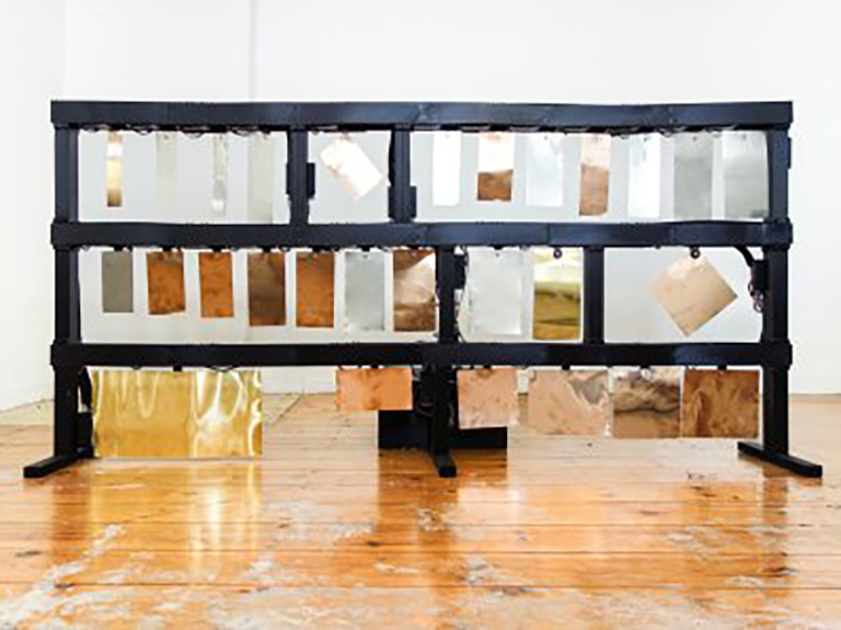 „Seit 2024 arbeite ich an motorisierten Instrumenten für installative Werke; in Kombination mit bildnerischen und skulpturalen Werken.