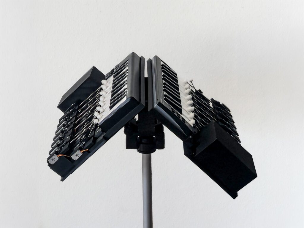 Meine Motorinstrumente beruhen auf jeweils eigenen Konzepten der Klangerzeugung und auf einer spezifischen motorisierten bzw. robotischen Form von Performance und Komposition. Die Instrumente übersetzen mechanische Abläufe – Schütteln, Reiben, Schlagen, Biegen, Rollen etc. – in akustische Prozesse, deren Dynamik und Form direkt aus ihren Bewegungsprofilen hervorgeht. Dadurch entstehen Klanggestalten, die nicht von menschlicher Virtuosität ausgehen, sondern aus den physikalischen Bedingungen der Mechanik selbst: Choreographierte Maschinen, deren visuelle Bewegung und hörbare Struktur untrennbar ineinandergreifen.