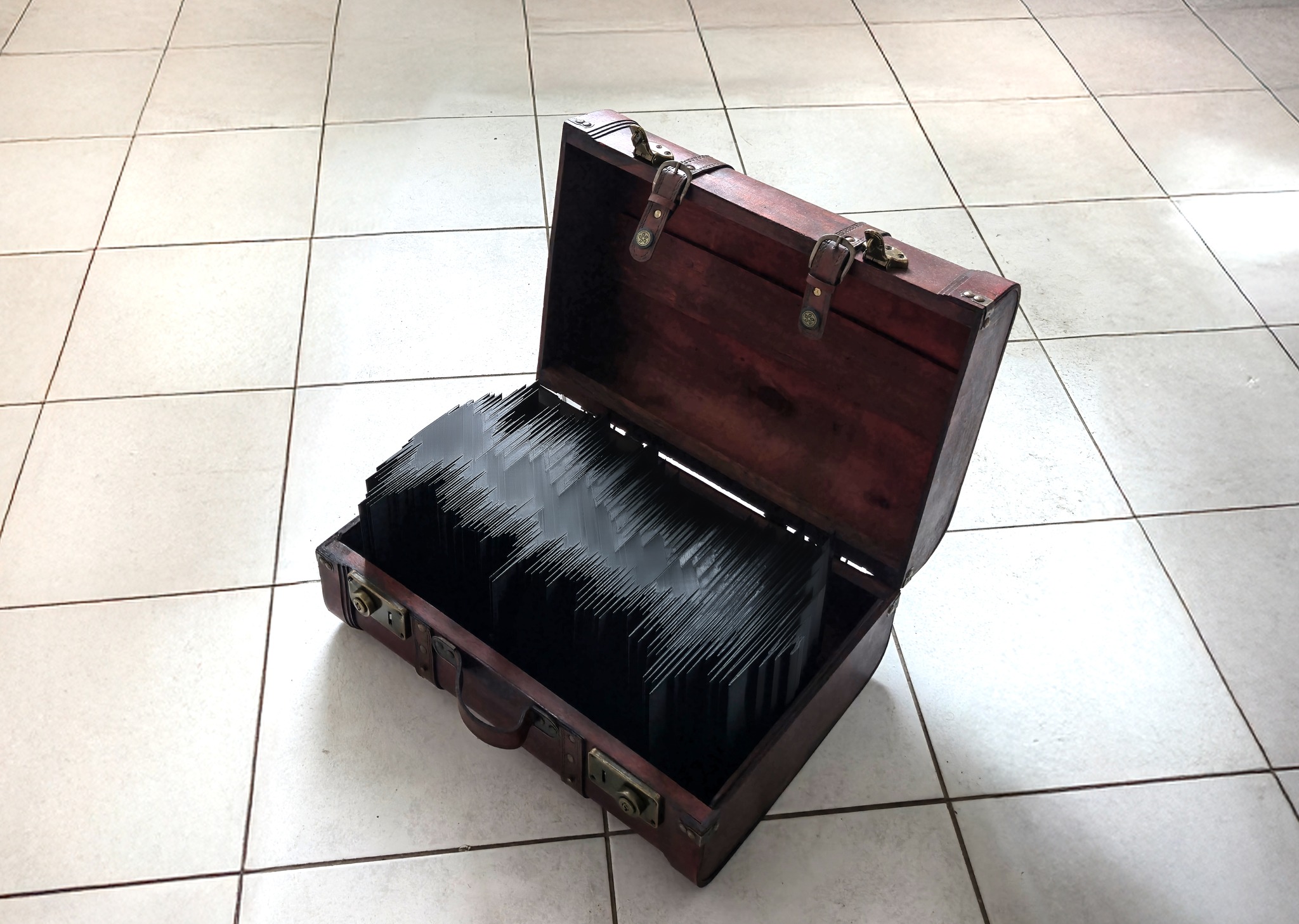 Schallwelle eines Seufzers (3D Druck); Holzkoffer